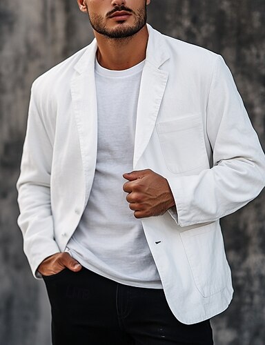 Men's Lightweight Jacket Blazer Jacket Linen Blazer Formal Office Spring & Summer Cotton And Linen Solid Color Comfy Single Breasted Blazer White Beige