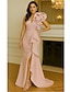 Mermaid / Trumpet Sweep / Brush Train Tea Length Ball Gown with Overskirt Formal Dress Evening Gown Elegant Side Slit Silky Long Sleeve High Neck Formal Satin Sequined with Pearls Sequin 2025