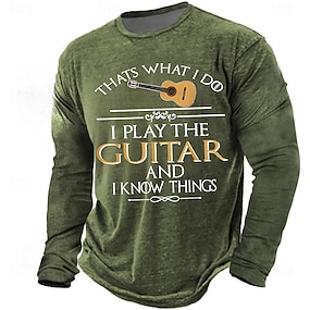 Mens Graphic Long Sleeve T Shirt Thats What I Do I Play The Guitar And I Know Things Vintage Army Green Musician Tee Clothing Apparel S M L XL XXL XXXL