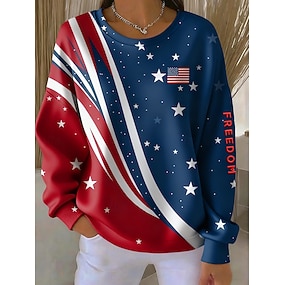 Independence Day PatrioticWomen's Pullover Sweatshirt Graphic Casual Long Sleeve Crew Neck Regular Tops Casual Street Dailywear Blue Fall Winter