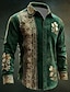 St. Patrick's Day Men's Four Leaf Clover Shamrock Celtic Art Shirt Button Up Shirt Long Sleeve Vintage Retro Holiday Spring Fall Turndown 3D Print Linen Like Shirt Green 1# Green