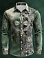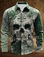 St. Patrick's Day Men's Skull Four Leaf Clover Shamrock Shirt Button Up Shirt Long Sleeve Vintage Retro Holiday Spring Fall Turndown 3D Print Linen Like Shirt Green 1# Green