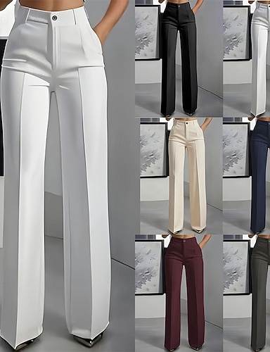 Women's Trousers Dress Pants Fashion Streetwear Work Full Length High Waist Plain Wide Leg Elastic Waistband Comfort Soft Breathable Micro-elastic Outdoor Office Street Blue Navy-blue Black White