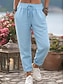 Women's Cotton Linen Pants Trousers Summer Pants Vacation Basic Casual Full Length Mid Waist Drawstring Elastic Waist Comfort Lightweight Breathable Inelastic Beach Travel Holiday Blue Grey Black