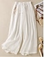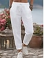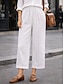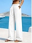 Women's Trousers Summer Pants Baggy Pants Beach Pants Vacation Basic Full Length Mid Waist Solid Color Plain Drawstring Straight Leg Comfort Soft Breathable Inelastic Daily Beach Holiday rice white