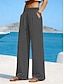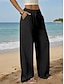 Women's Cotton Linen Pants Trousers Summer Pants Baggy Pants Vacation Basic Casual Full Length High Waist Plain Pocket Wide Leg Elastic Waistband Soft Comfortable Breathable Stretchy Beach Holiday