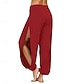 Women's Culottes Wide Leg Chinos Bloomers Harem Pants Elegant Vacation Vintage Full Length Medium Waist Plain Patchwork Elastic Waistband Split Comfy Breathable High Elasticity Daily Outdoor Vacation