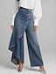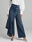 Women's Wide Leg Vacation Basic Full Length Mid Waist Inelastic Vacation Street Causal Blue Black Deep Blue Spring Loose Fit