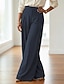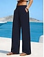 Women's Cotton Linen Pants Wide Leg Pants Trousers Baggy Pants Vacation Fashion Basic Full Length Natural Plain Pocket Elastic Waist Comfort Quick Dry Soft Inelastic Streetwear Beach Holiday Blue