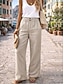 Women's Faux Cotton Linen Wide Leg Chinos Pants Trousers Streetwear Basic Casual Full Length High Waist Plain Pocket Comfy Soft Comfortable Inelastic Outdoor Street Apricot Summer Spring Fall Loose