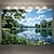 Nature Landscape Lake Tapestry Blue Sky White Clouds Reflection Wall Hanging Green Trees Yellow Flowers For Living Room Bedroom Home Decor