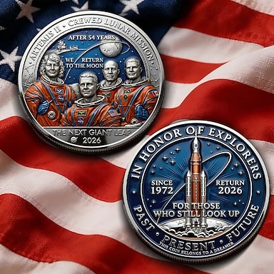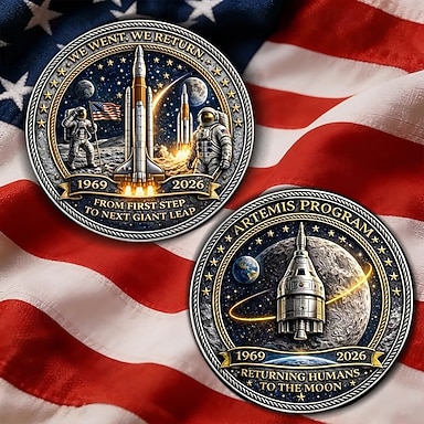 Artemis II Lunar Mission Commemorative Coin, Space Exploration Collectible Challenge Coin, Moon Landing Memorabilia Silver Coins for Home Decor, Collector, Astronomy Lovers