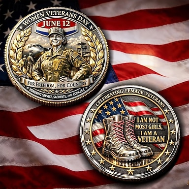 Women Veterans Day Commemorative Coin Honoring Bravery and Service of Female Military Heroes, Patriotic Collectible Medal, Inspirational Gift for June 12 Celebration