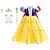فستان تنكري للأميرة حسناء والجمال والوحش للأطفال البنات بطبقات كرتونية دانتيل مكشكش أصفر ماكسي بأكمام قصيرة فساتين لطيفة مناسبة بشكل منتظم