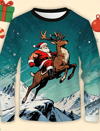 Christmas Boys' 3D Graphic Santa Claus Dinosaur T shirt Tee Long Sleeve Spring Fall Fashion Basic Kids 4-12 Years Crew Neck Outdoor Casual Daily Regular Fit