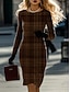 Women's Mini Dress T Shirt Dress Tee Dress Casual Semi Formal Office Daily Regular Fit Geometric Houndstooth Long Sleeve Crew Neck Dark Brown Red Spring Fall Winter