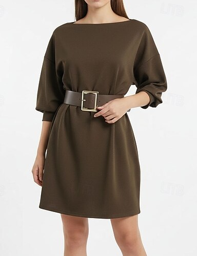 Women's Mini Dress Casual Dress Sheath Dress Elegant Fashion Modern Daily Going out Weekend Regular Fit Plain Long Sleeve Crew Neck Brown Spring Fall Winter