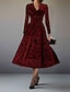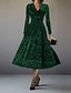 Women's Midi Dress Velvet Dress Casual Dress Elegant Vintage Fashion Vacation Daily Going out Regular Fit Floral Long Sleeve V Neck Blue Black Wine Green Spring Fall Winter