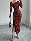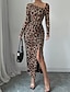 Women's Midi Dress Sheath Dress Print Dress Modern Outdoor Vacation Holiday Regular Fit Leopard Long Sleeve Crew Neck Red Brown Khaki Fall Winter