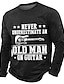 Fathers Day Gift Never Underestimate An Old Man On Guitar Funny Mens Long Sleeve T Shirt Musician Grandpa Birthday Tee Clothing Apparel S M L XL XXL XXXL