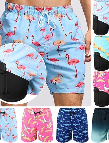 Men's Board Shorts Swim Shorts Swim Trunks Summer Shorts Drawstring Elastic Waist 2 in 1 Graphic Comfort Breathable Short Casual Holiday Beach Hawaiian Stylish Gradient blue Black