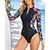 Women's Rash Guard Bathing Suit One Pieces Graphic Patchwork Zip Up UV Protection High Elasticity Long Sleeve Swimwear Surfing Diving Snorkeling Spring
