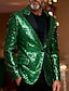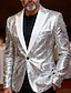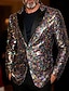 Male Blazer Wedding Party Party & Evening Pocket All Seasons Sequined Glittery Wedding Single Breasted Blazer Silver Black Royal Blue Gold