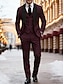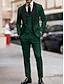 Men's Blazer+Dress Pants Suits Business Cocktail Party Wedding Party Fashion Casual Spring Fall Polyester Plain Pocket Buttons Comfortable Single Breasted Blazer Black Red Burgundy Green