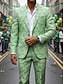 Men's Blazer+Dress Pants Blazer Suits Business Work Party Fashion St. Patrick's Day Spring Fall 100% Cotton Graphic Shamrock Printing Single Breasted Blazer Green