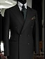 Men's Blazer+Dress Pants Blazer Suits Business Cocktail Party Wedding Party 2 Piece Fashion Casual Spring Fall Polyester Plain Pocket Buttons Comfortable Double Breasted Blazer Blue Dark Gray Black
