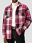Men's Shirt Jacket Casual Jacket Vacation Daily Thermal Warm Pocket Spring Fall Plaid Fashion Classic Lapel Regular Dark Gray Yellow Orange Light Grey Rose Jacket