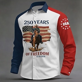 Men's 4th of July U.S. 250th Anniversary National Flag Work Shirt Western Shirt Cargo Shirt Short Sleeve Casual Tactical Going out Summer Turndown Buttons Print Black Green Dark Blue Beige Gray
