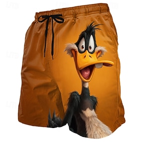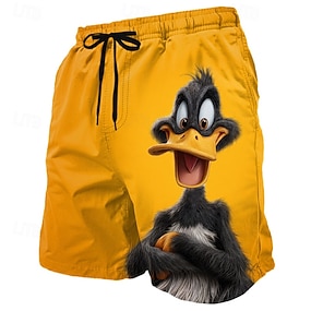 Men's Funny Duck Cartoon Animals Swim Trunks Bathing Suits Swim Shorts Board Shorts Mid Waist Hawaiian Beach Vacation Wear Side Pockets Mesh Lining Elastic Drawstring Waist Designer Clothing Apparel