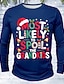 クリスマス 男性用 サンタクロース おかしい Tシャツ 長袖 Tシャツ 3Dプリント クルーネック シャツ ファッション ベーシック 3D ストリート カジュアル 日常 ブラック ルビーレッド ブルー 夏 春 衣類 S M L XL XXL XXXL