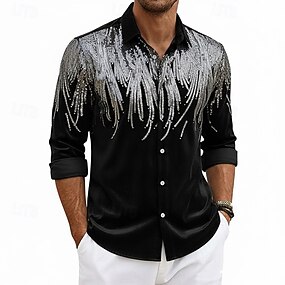 Men's Shirt Summer Shirt Casual Shirt Beach Shirt Button Up Shirt Velvet Shirt Black Long Sleeve Solid Color Lapel Casual Daily Sequins Clothing Apparel Fashion Casual Trendy Comfortable