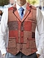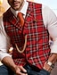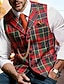 Men's Vest Waistcoat Gilet Formal Christmas Outdoor Vacation Fashion Streetwear Spring Fall Buttons Polyester Plaid Single Breasted V Neck Tailored Fit Red Vest