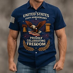 Men's 4th of July U.S. 250th Anniversary Eagle US Flag Shirt Western Shirt Button Up Shirt Short Sleeve Patriotic Holiday Summer Spring Turndown 3D Print Linen Like Shirt Blue Wine Dark Gray Light