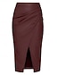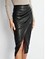 Women's Elegant Fashion Midi High Waist Skirts Plain Ruched Split Ends Inelastic Daily Street Wine Red Black Brown Beige Spring Faux Leather Polyester