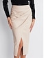 Women's Elegant Vintage Fashion Casual Maxi High Waist Skirts Plain Ruched Patchwork Split Ends Stretchy Daily Beach Apricot Black White Green Summer Cotton Polyester