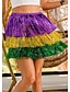 Carnival Women's Skirt A Line Fashion Casual Mini High Waist Skirts Color Block Tassel Fringe Inelastic Daily Party Purple Spring Polyester