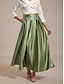 Women's Satin Skirts Elegant Maxi Mid Waist Skirts Micro-elastic Cocktail Party Weddiing Guest Moss green Summer Satin