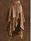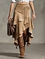 Women's Vintage Fashion Casual Midi High Waist Skirts Plain Drawstring Irregular Hem Micro-elastic Daily Street Brown Khaki Spring Polyester