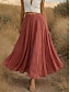 Women's Bohemia Vintage Casual Maxi High Waist Skirts Plain Flowy Stretchy Daily Street Red Summer Cotton Linen