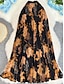 Women's Bohemia Fashion Casual Maxi High Waist Skirts Floral Pleated Floral Print Inelastic Micro-elastic Daily Holiday Black White Yellow Red Summer Polyester