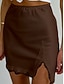 Women's Fashion Casual Mini High Waist Skirts Plain Tassel Fringe Patchwork Asymmetric Hem Inelastic Micro-elastic Daily Street Brown Summer Polyester