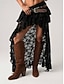 Women's Elegant Vintage Sexy Long Maxi Mid Waist Skirts Lace Ruffle Patchwork Inelastic Daily Vacation Black Spring, Fall, Winter, Summer Nylon