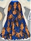 Women's Vintage Fashion Casual Maxi High Waist Skirts Floral Pleated Print Micro-elastic Daily Date Blue Black White Red Summer Polyester