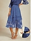 Women's Elegant Midi Mid Waist Skirts Floral Layered Elastic Waistband Illusion Lace Stretchy Daily Valentine's Day Wedgewood Summer Polyester