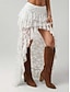 Women's Fashion Sexy Casual Asymmetrical Mid Rise Skirts Lace Inelastic Daily Beach Apricot Black White Summer Polyester