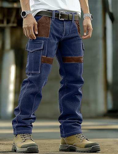 Men's Cargo Pants Cargo Trousers Corduroy Pants Work Pants Suede Pants Patchwork Multi Pocket Straight Leg Plain Moisture Wicking Breathable Full Length Daily Outdoor Vacation Fashion Blue Black